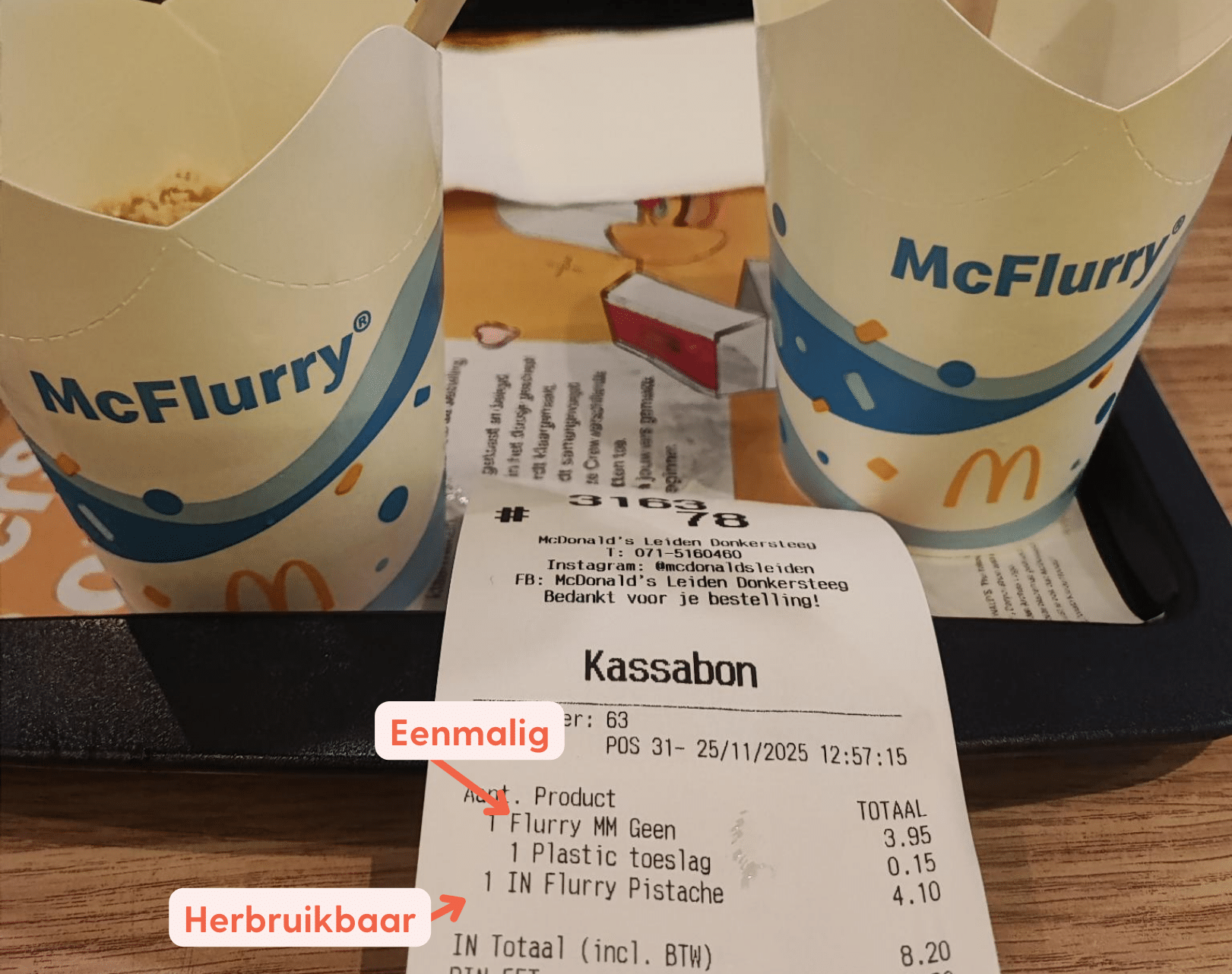 - Bij McFlurry kregen we, toen we zowel een wegwerp- als een herbruikbare verpakking bestelden, alleen wegwerpverpakkingen geserveerd (foto 3).
