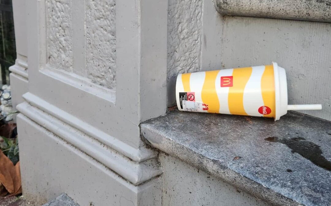 Alle cafés, restaurants en hotels die eten en drinken voor consumptie ter plaatse serveren, moeten dit aanbieden in herbruikbare verpakkingen[1]. Deze wet is van toepassing in Nederland sinds januari 2024, als implementatie van Europese regelgeving. Het doel is het terugdringen van het gebruik van plastic bevattende wegwerpverpakkingen. McDonald’s overtreedt[2] sinds augustus 2024 al deze wet door – naast herbruikbare verpakkingen aan te bieden – de herintroductie van wegwerpbekers van papier met plastic coating bij consumptie ter plaatse (voor drankjes en hun McFlurry). Daarnaast rekenen de restaurants hun klanten €0,15 per wegwerpbeker, terwijl deze “SUP-toeslag” uitsluitend moet worden gerekend voor take-away verpakkingen. De grootste fastfoodketen van Nederland voldoet dus niet aan de regels en verdient bovendien extra geld aan haar klanten door een verdienmodel te creëren rondom de verboden wegwerpverpakkingen.